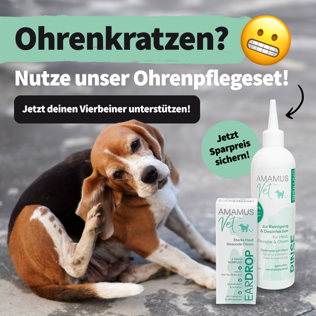 Sanfte und effektive Ohrenpflege für Hunde und Katzen. Unsere AMAMUS Vet Ohrenpflege kombiniert...